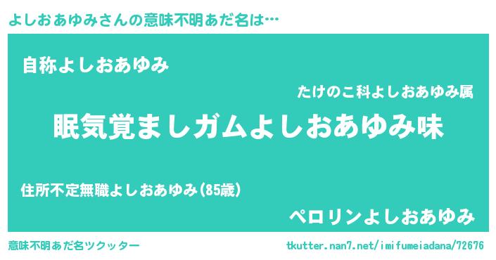 | 欧米人風あだ名 | 『よしおあゆみ・ステッグマイヤー』 |