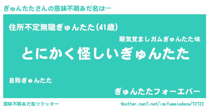 | 女子向けラノベタイトル風あだ名 | 『ぎゅんたたは平凡を望む』 |