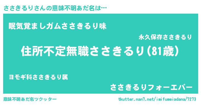 | ヒーロー風カッコイイあだ名 | 『仮面ササダー』『正義の使者ささきるり』 |