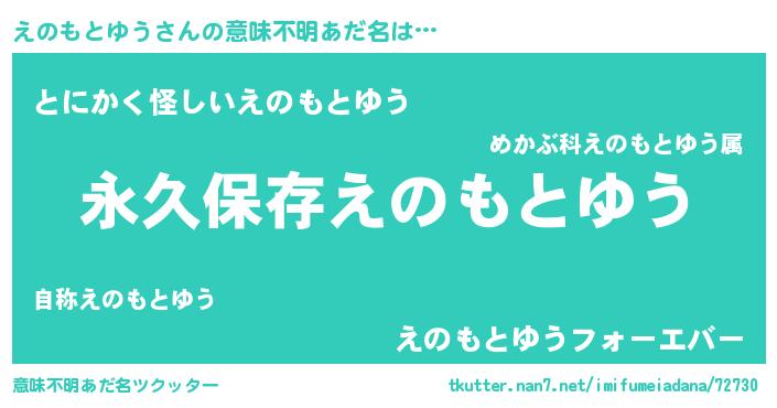| 男性向けラノベタイトル風あだ名 | 『えのもとゆうという概念が存在しない退屈な世界 』 |