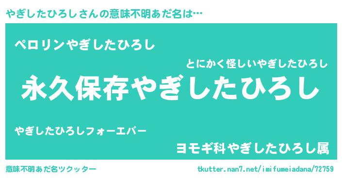 | 胡散臭い通販商品みたいなあだ名 | 『前代未聞の水素水…その名も「やぎしたひろし」』 |
