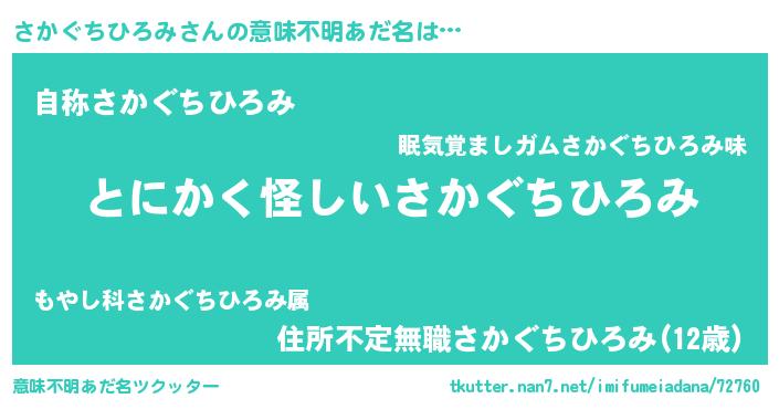 | 伝説のあだ名 | 『孤高の遊び人さかぐちひろみ』 |