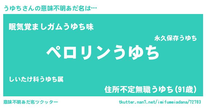 | 男性向けラノベタイトル風あだ名 | 『うちのうゆちが世界を掌握している!』 |