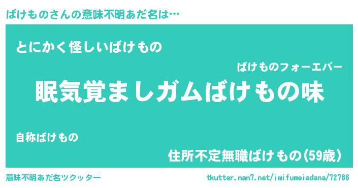 | ヒーロー風カッコイイあだ名 | 『愛の使者ばけもの』『炎刃騎士バケ』 |