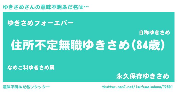 | ヒーロー風カッコイイあだ名 | 『仮面ユキダー』『ウルトラゆきさめマン』 |