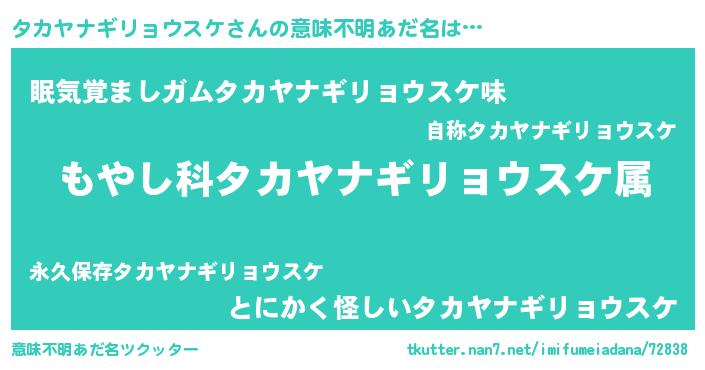 | 男性向けラノベタイトル風あだ名 | 『転生したらタカヤナギリョウスケだった件』 |