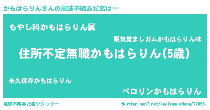 | 女子向けラノベタイトル風あだ名 | 『悪役かもはらりんに転生したようですが、知った事ではありません』 |
