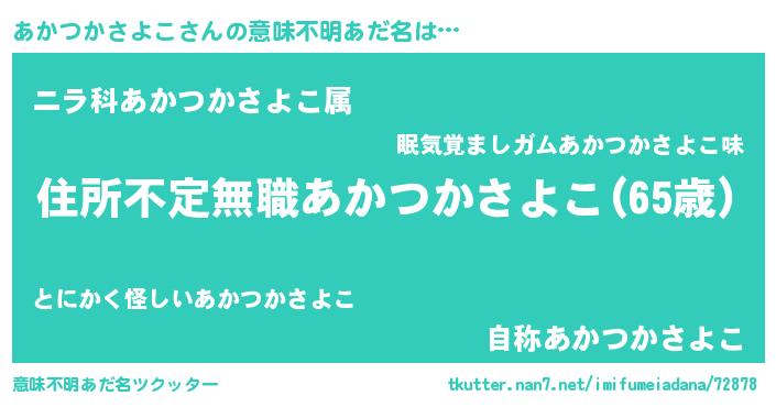 | 欧米人風あだ名 | 『アンジェラ・あかつかさよこ』 |