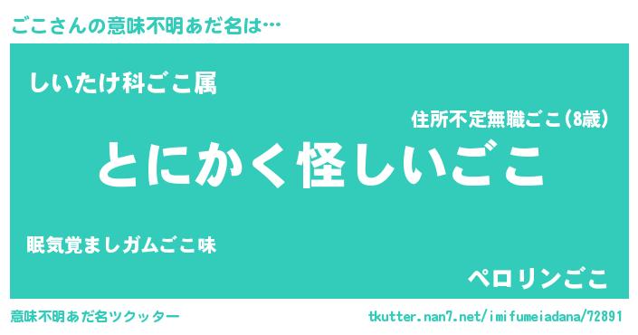 | 料理風あだ名 | 『ごこの豆乳スープ』『ごこごはん』 |