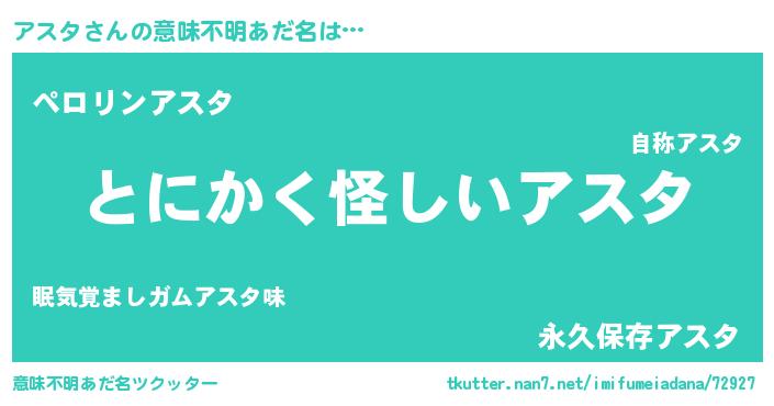 | 女子向けラノベタイトル風あだ名 | 『アスタは平凡を望む』『闇のアスタ』 |