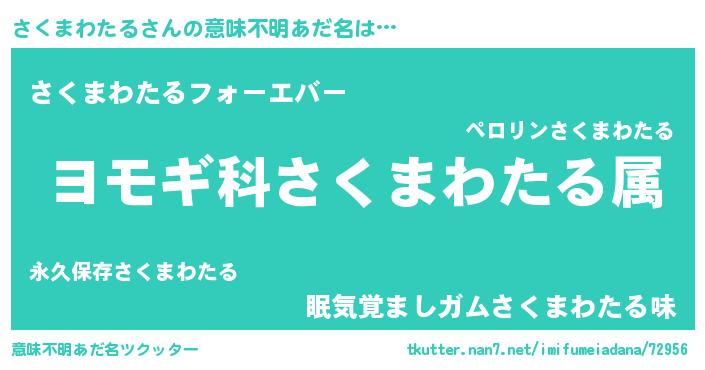 | 男性向けラノベタイトル風あだ名 | 『さくまわたる~年齢イコール彼女いない歴の魔法使い~』 |