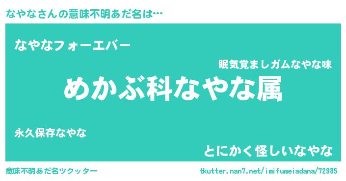 | 男性向けラノベタイトル風あだ名 | 『ナヤナスレイヤー』 |
