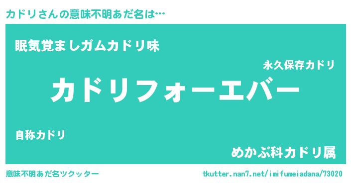 | ヘコむあだ名 | 『豆乳』『カドリ(苦笑)』『カドにー』 |