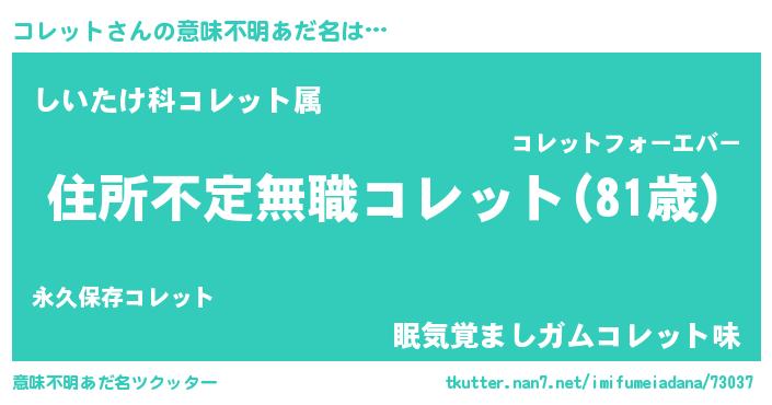 | 女子向けラノベタイトル風あだ名 | 『悪役コレットに転生したようですが、知った事ではありません』 |