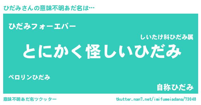 | 女子向けラノベタイトル風あだ名 | 『ひだみの卵を拾いまして』 |