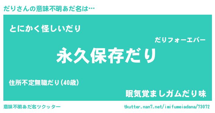 | 男性向けラノベタイトル風あだ名 | 『だりという概念が存在しない退屈な世界 』 |