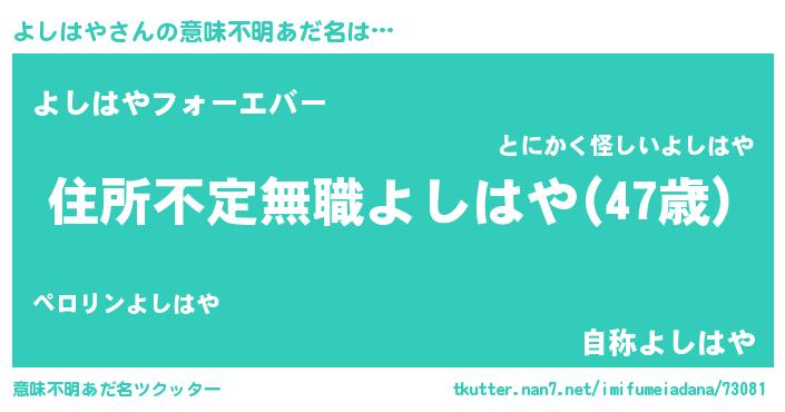 | ヒーロー風カッコイイあだ名 | 『仮面ヨシダー』『ウルトラよしはやマン』 |
