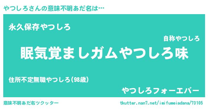 | 男性向けラノベタイトル風あだ名 | 『やつしろに滅ぼされるだけの簡単なお仕事です』 |