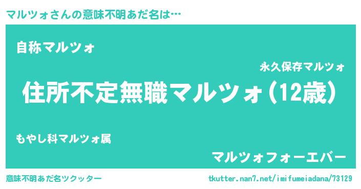 | 男性向けラノベタイトル風あだ名 | 『この素晴らしい世界にマルツォを!』 |