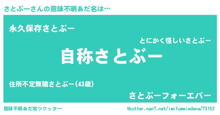 | 女子向けラノベタイトル風あだ名 | 『闇のさとぶー』『さとぶー伯爵の花嫁』 |