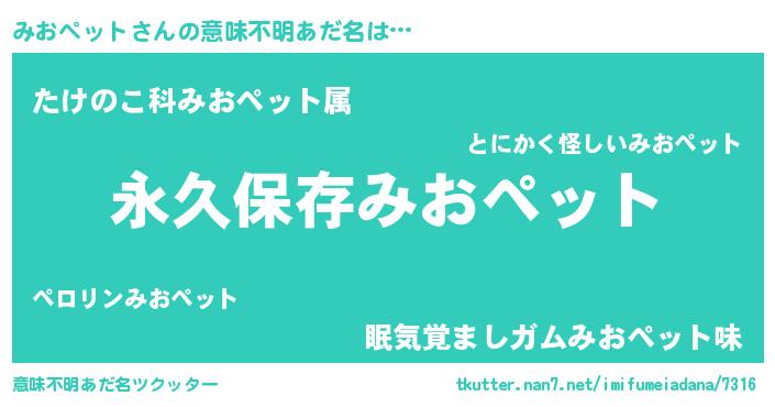 | 胡散臭い通販商品みたいなあだ名 | 『来世でも幸せになれる健康食品…その名も「みおペット」』 |