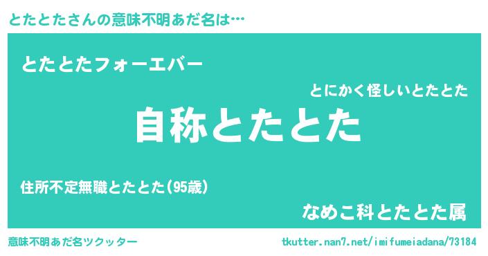 | 女子向けラノベタイトル風あだ名 | 『闇のとたとた』『とたとた伯爵の花嫁』 |