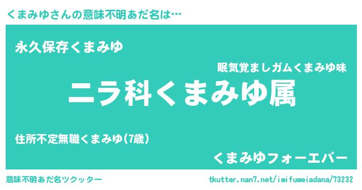 | 胡散臭い通販商品みたいなあだ名 | 『前代未聞の健康食品…その名も「くまみゆ」』 |