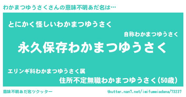 | ヘコむあだ名 | 『わかまつゆうさく(笑)』『わかお』 |
