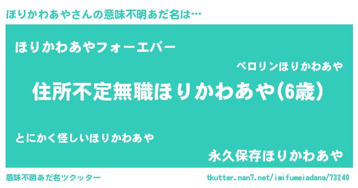 | 男性向けラノベタイトル風あだ名 | 『この素晴らしい世界にほりかわあやを!』 |