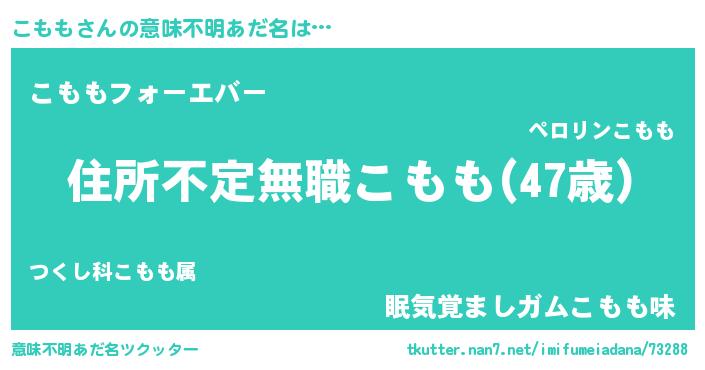 | 男性向けラノベタイトル風あだ名 | 『この素晴らしい世界にこももを!』 |