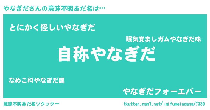 | 男性向けラノベタイトル風あだ名 | 『Re:やなぎだから始める異世界生活』 |