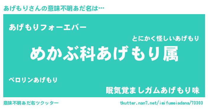 | ヘコむあだ名 | 『牛乳』『あげぷりん』『あげもー』 |