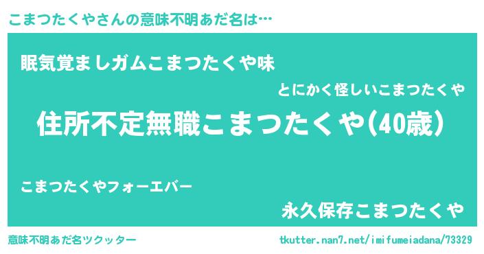 | 男性向けラノベタイトル風あだ名 | 『この素晴らしい世界にこまつたくやを!』 |