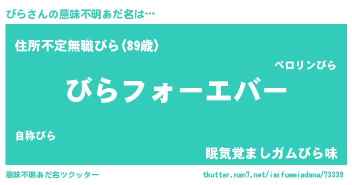 | ファンタジー風あだ名 | 『エターナルビラー』『ヴァルビラーナ』 |
