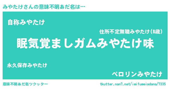 | 欧米人風あだ名 | 『みやたけ・ステッグマイヤー』 |