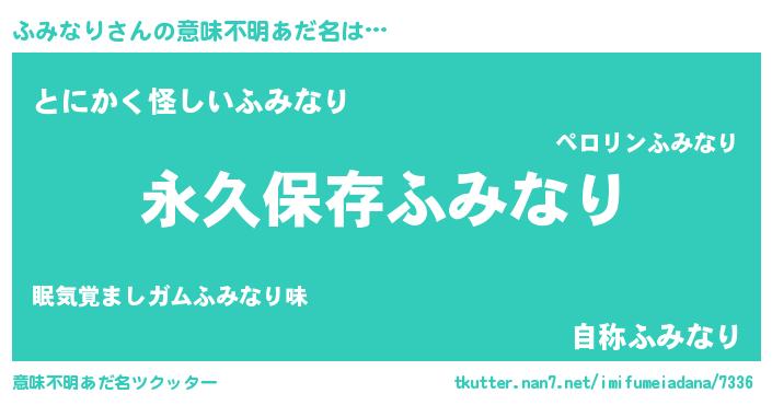 | 胡散臭い通販商品みたいなあだ名 | 『絶対に幸福をもたらす水素水…その名も「ふみなり」』 |