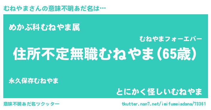 | 男性向けラノベタイトル風あだ名 | 『はたらくむねやまさま!』 |
