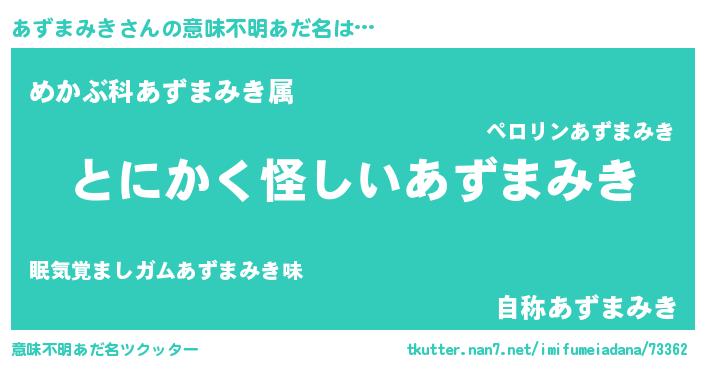 | 胡散臭い通販商品みたいなあだ名 | 『全米が絶賛したサプリメント…その名も「あずまみき」』 |