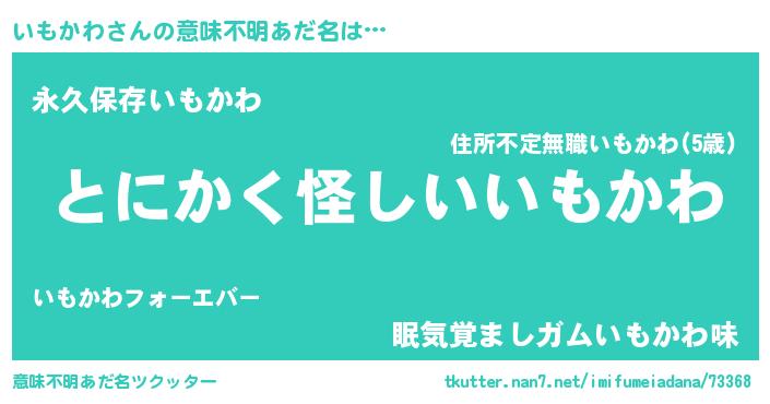| 胡散臭い通販商品みたいなあだ名 | 『信頼と実績のサプリメント…その名も「いもかわ」』 |