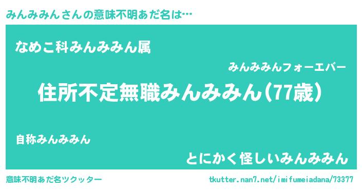 | 男性向けラノベタイトル風あだ名 | 『この素晴らしい世界にみんみみんを!』 |