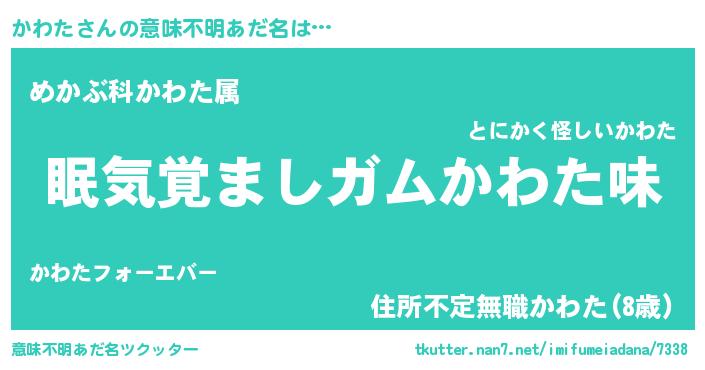 | ヘコむあだ名 | 『かわお』『豆乳』『かわた(遠い目)』 |