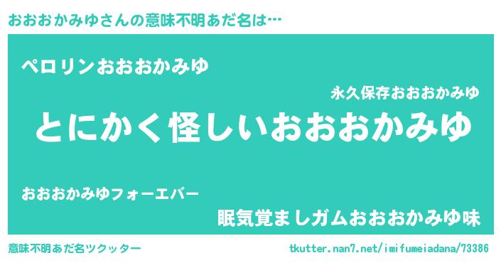 | 男性向けラノベタイトル風あだ名 | 『ダンジョンにおおおかみゆを求めるのは間違っているだろうか』 |