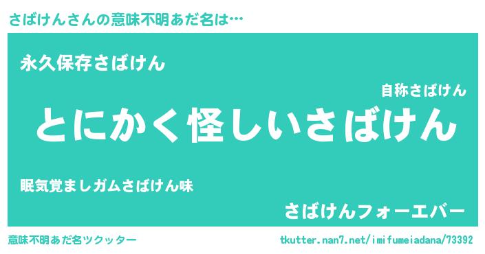 | 男性向けラノベタイトル風あだ名 | 『さばけんの嫁は女の子じゃないと思った?』 |