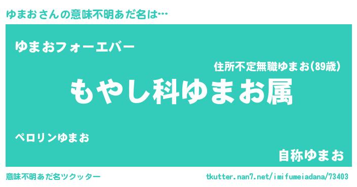 | ヘコむあだ名 | 『なまこ酢』『ゆまもー』『ゆま太郎』 |