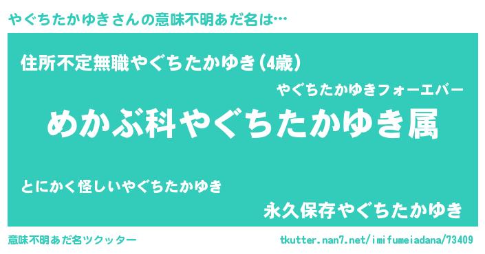| ヒーロー風カッコイイあだ名 | 『仮面ヤグダー』『ネオヤグチタカユキ』 |