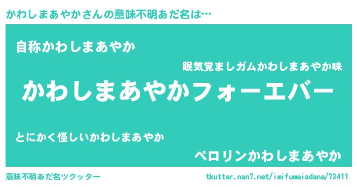 | ファンタジー風あだ名 | 『エターナルカワシマアヤカー』 |