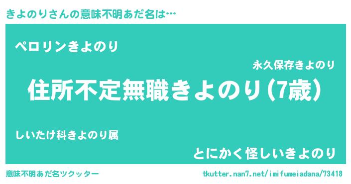 | 男性向けラノベタイトル風あだ名 | 『この素晴らしい世界にきよのりを!』 |