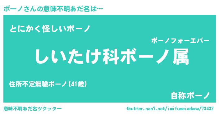 | 男性向けラノベタイトル風あだ名 | 『ボーノスレイヤー』『緋弾のボーノ』 |