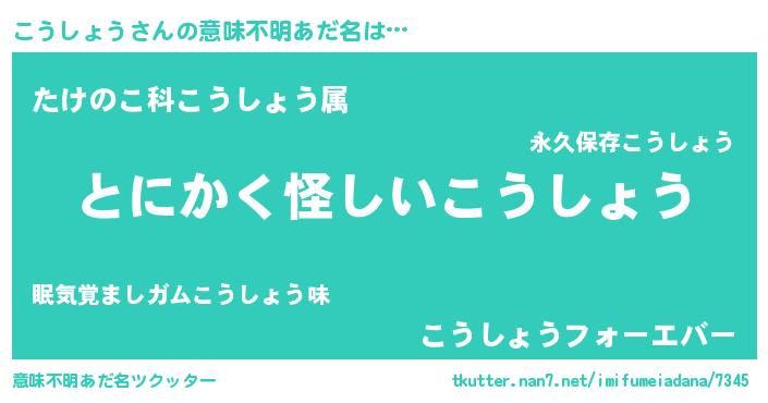 | 男性向けラノベタイトル風あだ名 | 『こうしょうの嫁は女の子じゃないと思った?』 |