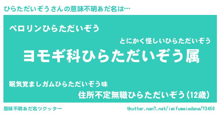 | ヒーロー風カッコイイあだ名 | 『スーパーヒラタダイゾウ』 |